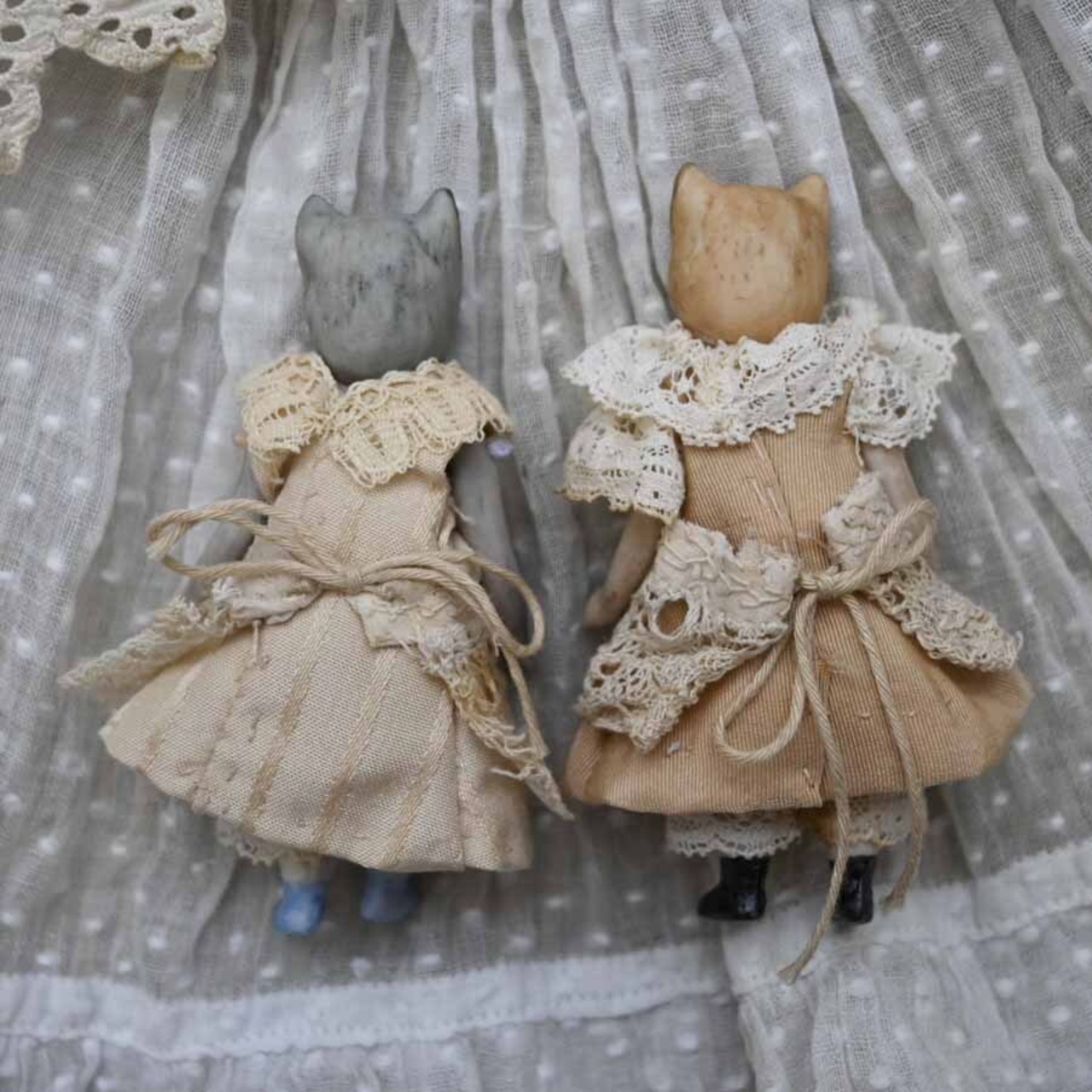 アンティークファブリックやレースでおめかししています。