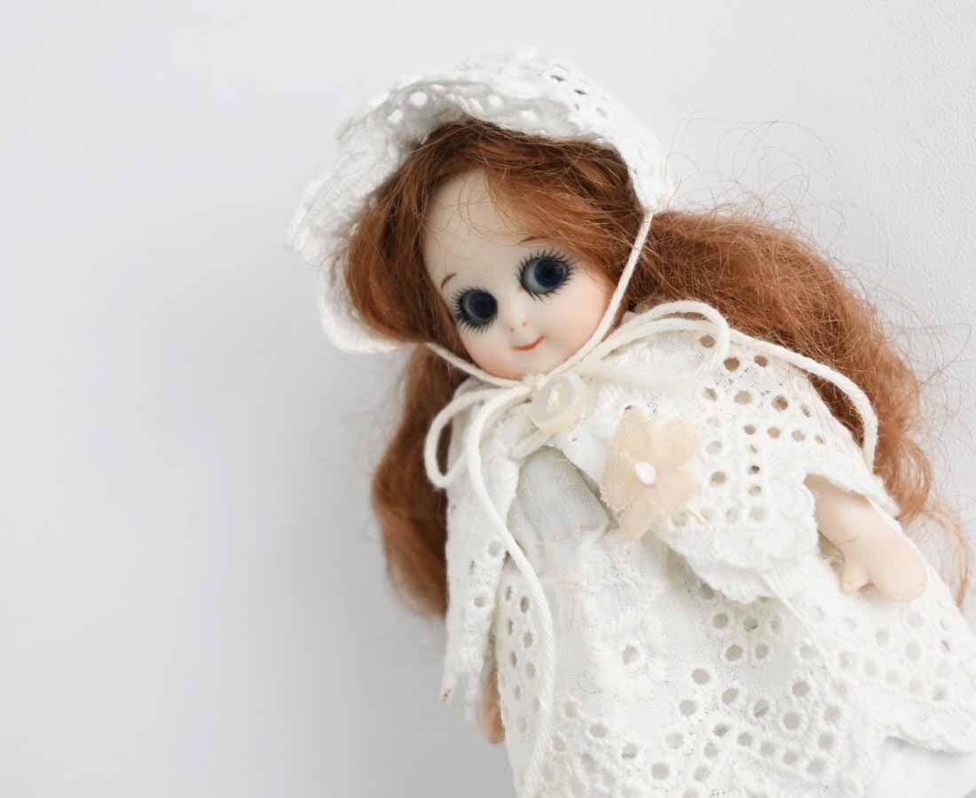 【完成ドール】ミニグーグリー /オールビスク/ 8cm/白いドレスB