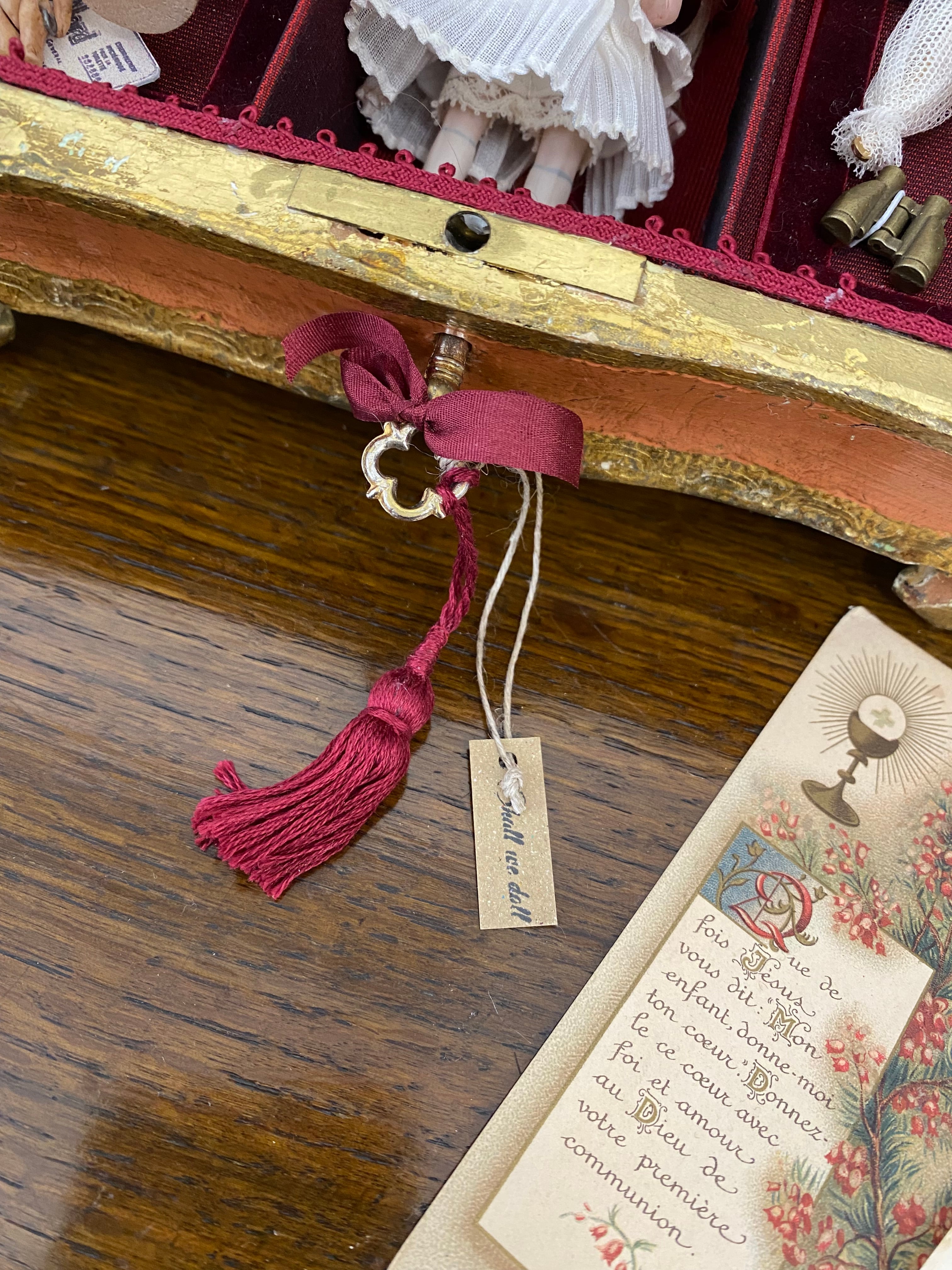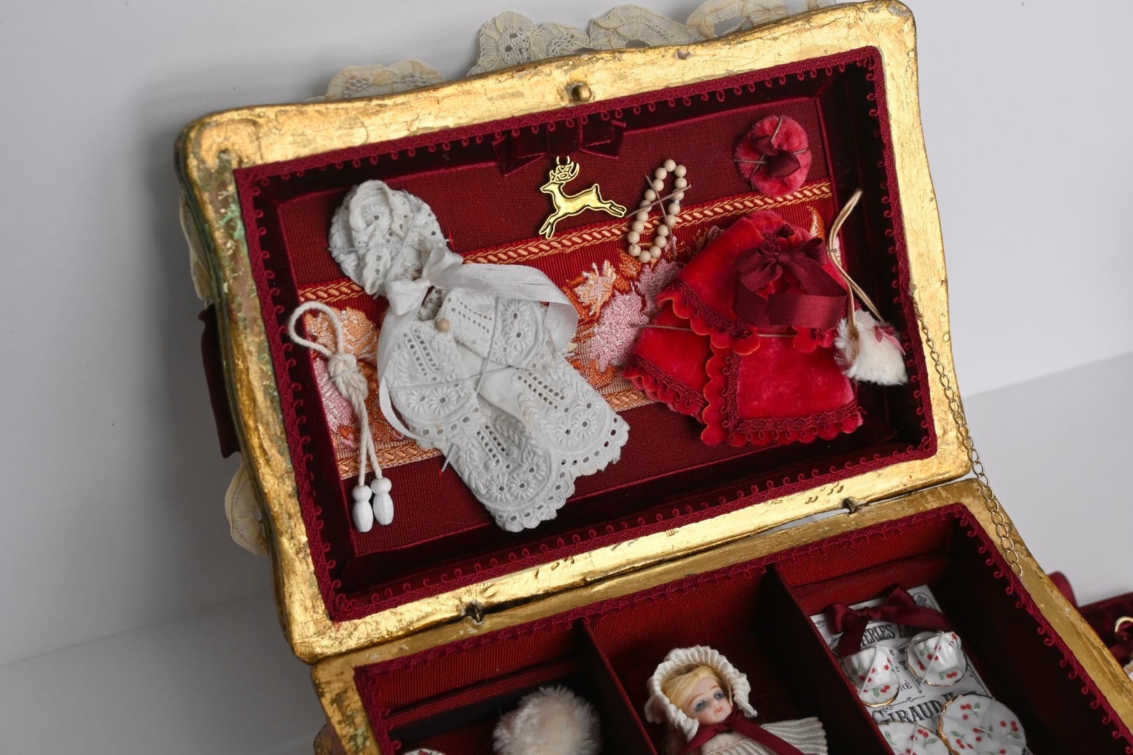 ボックス内は仕切られていて、シルクやアンティークリボンで内張をしています。