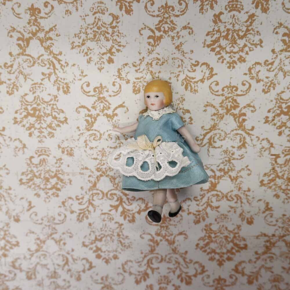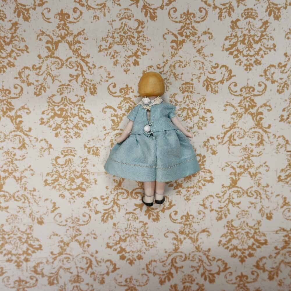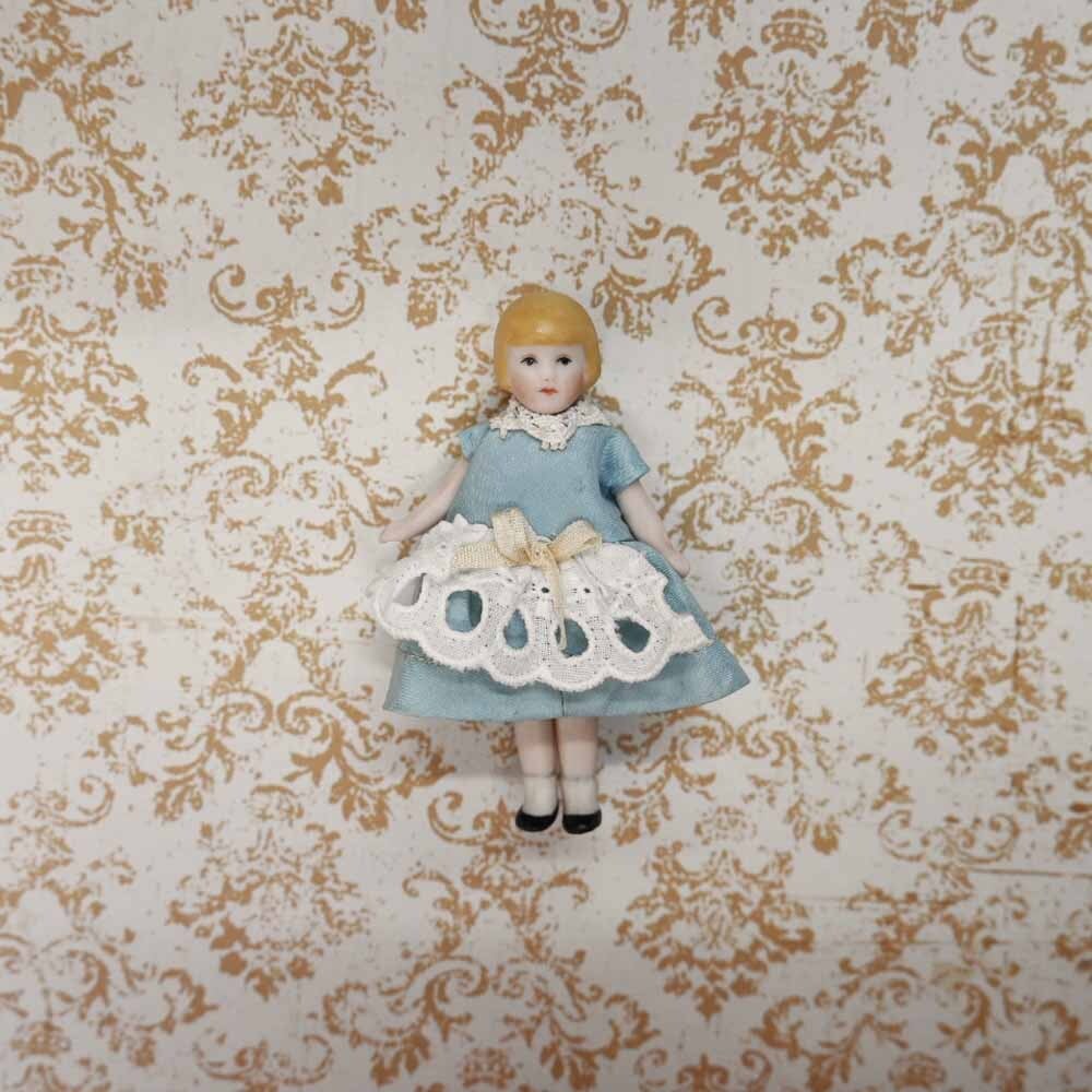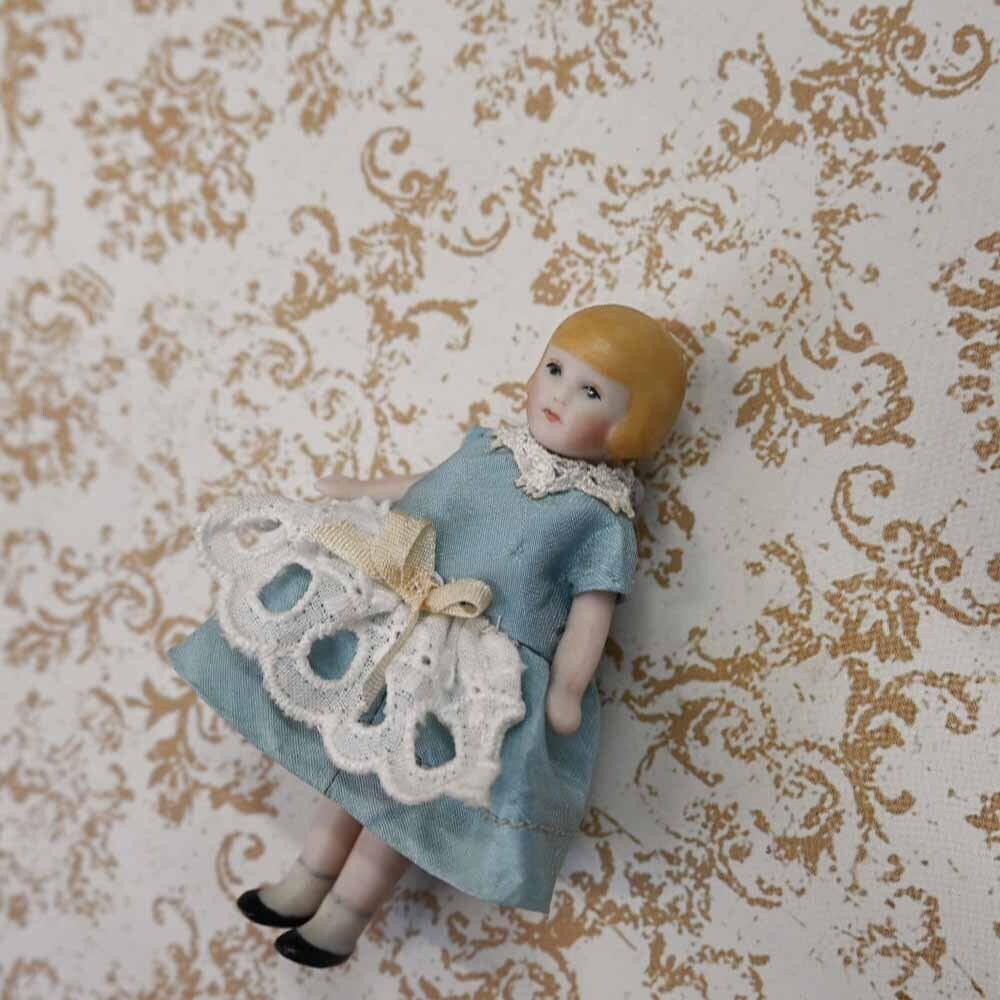 【完成ドール】サックスブルードレスのクロエ / 7cm /ミニチュアオールビスクドール