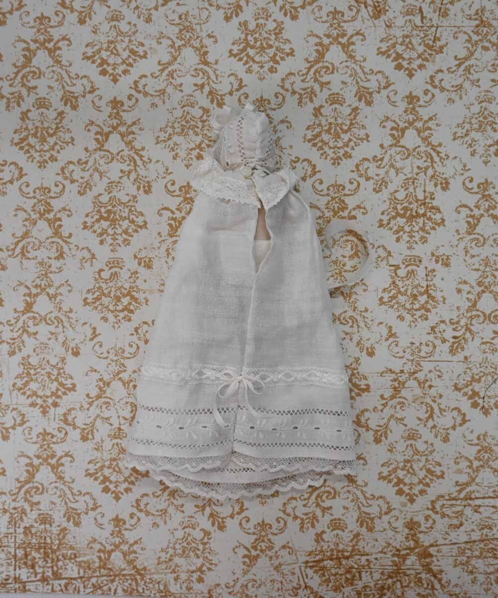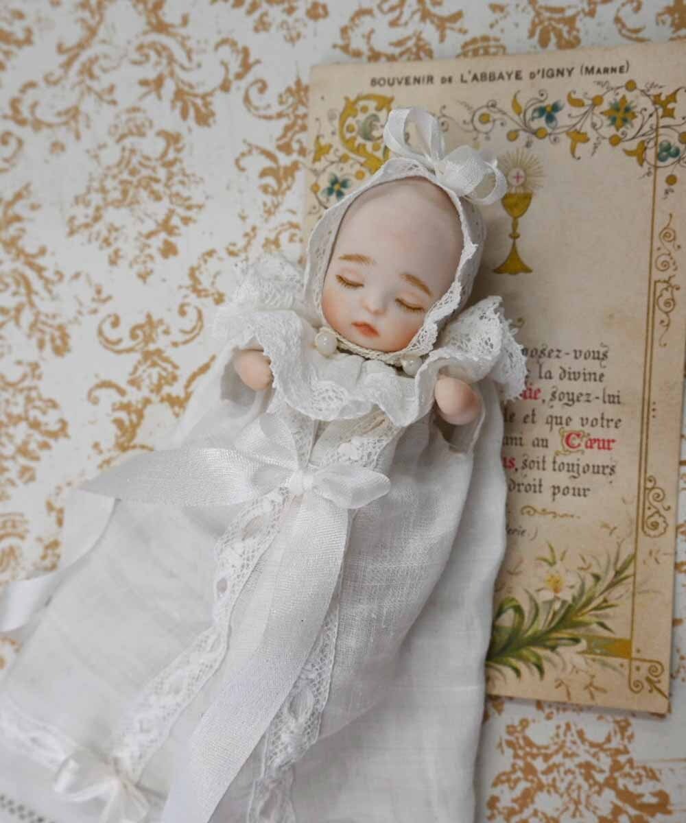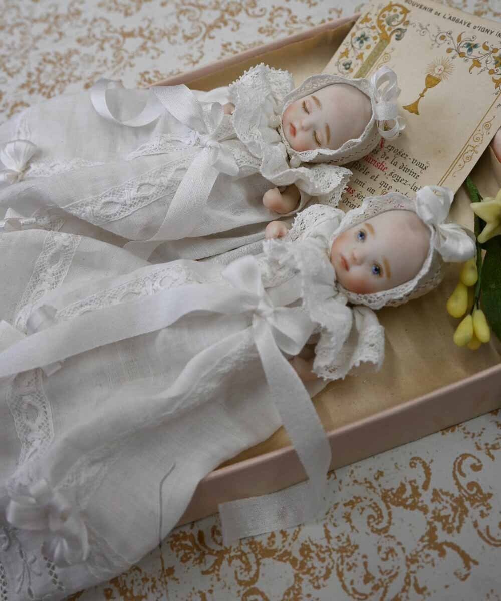 ロングベビードレスに身を包んだオールビスクドール