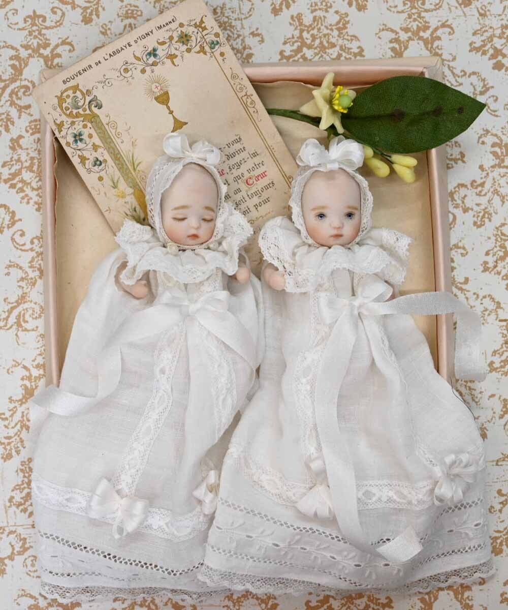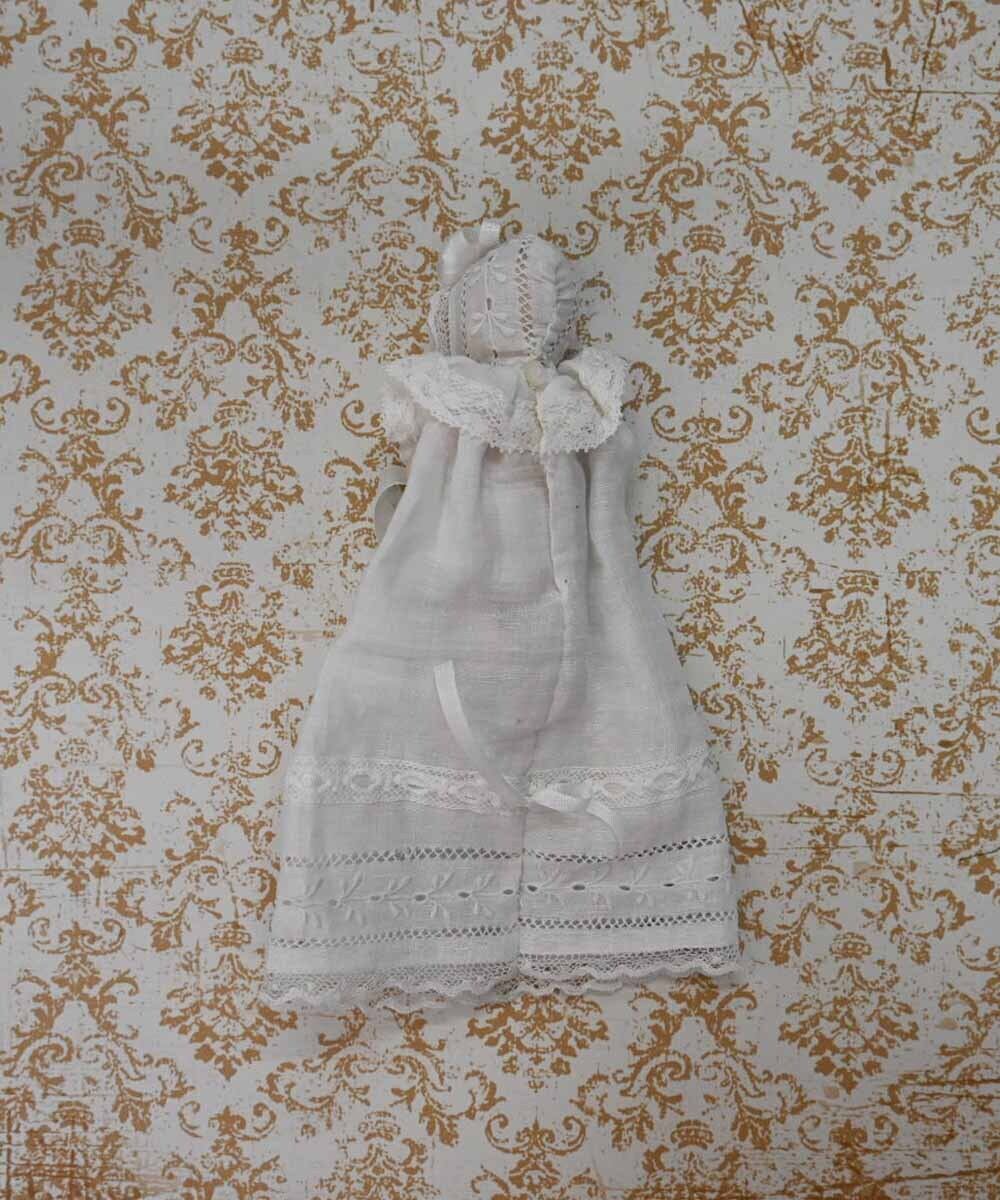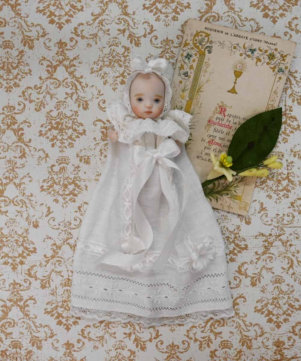 ロングベビードレスに身を包んだオールビスクドール