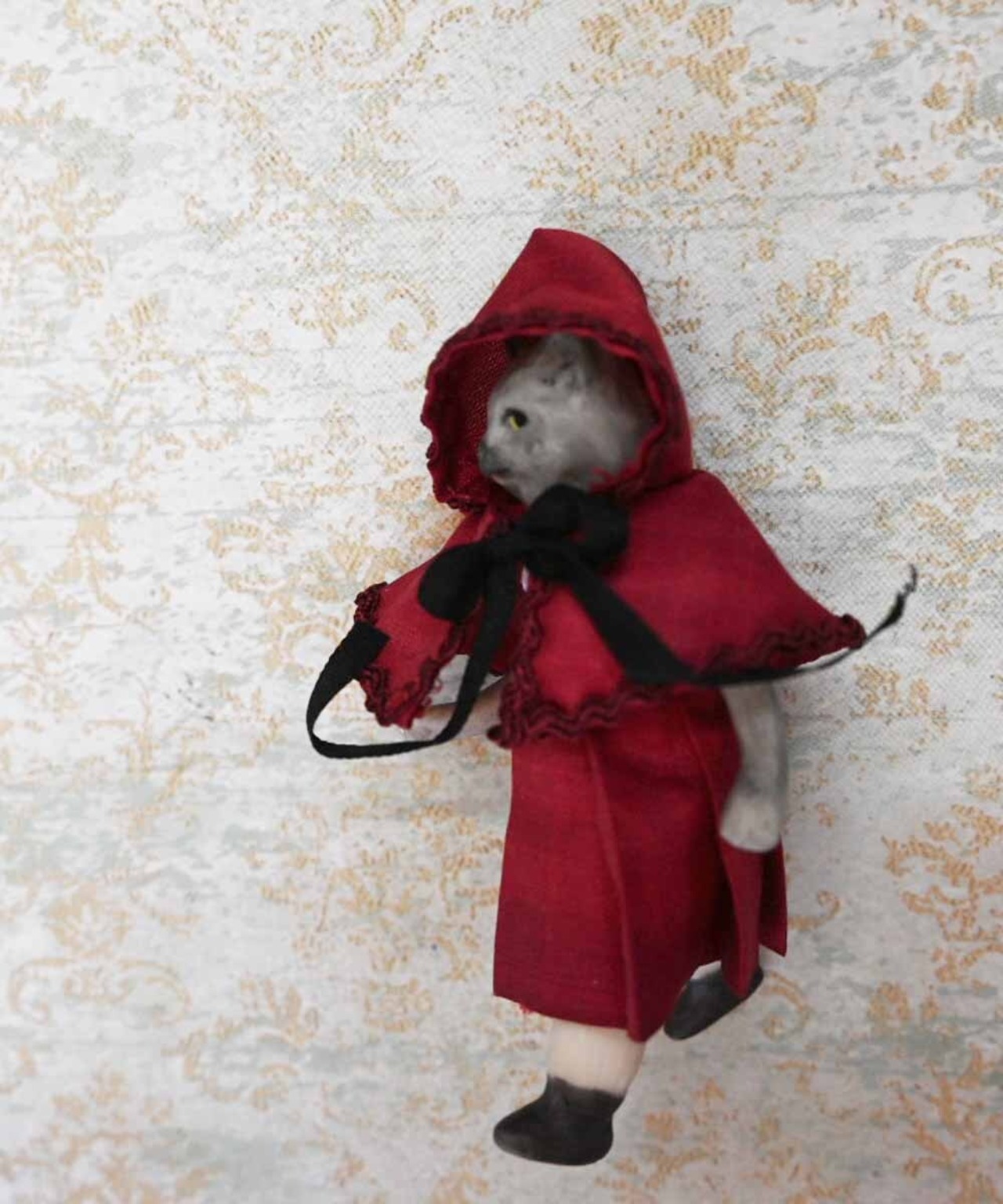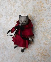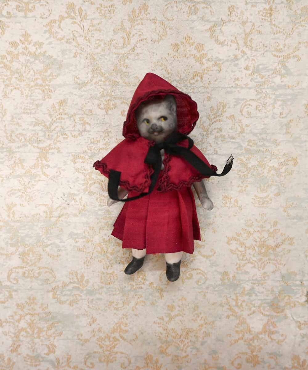 【完成ドール】ミニチュアビスクドール/キュルビス(猫) / RED/7cm