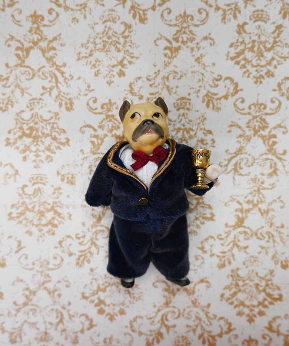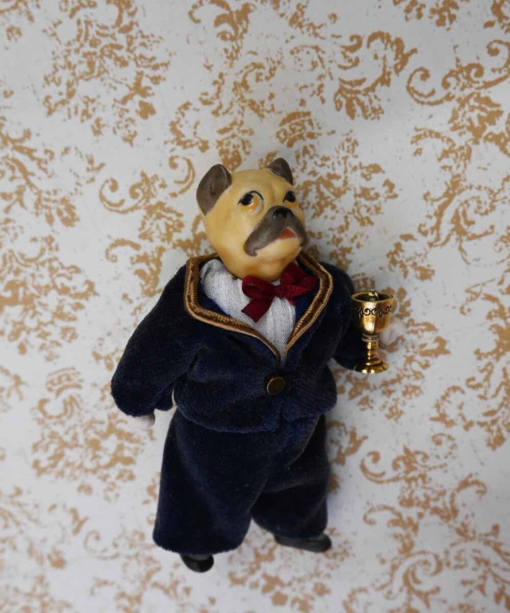 【完成ドール】ミニチュアビスクドール/ ブルドッケ(犬) /8.5cm