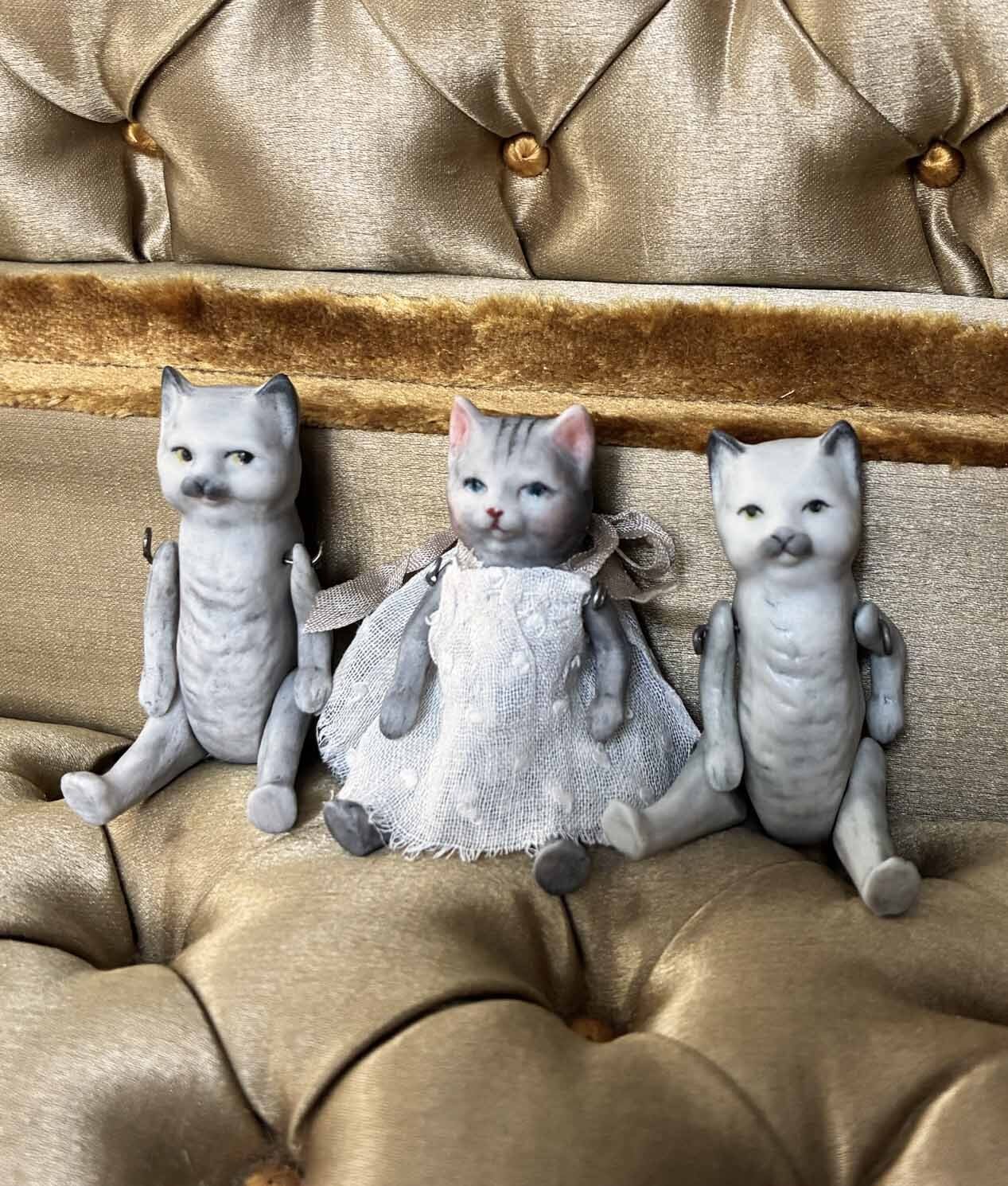 【完成ドール】ミニチュアビスクドール/ケルビス(猫) ワンピース/ 5.5cm