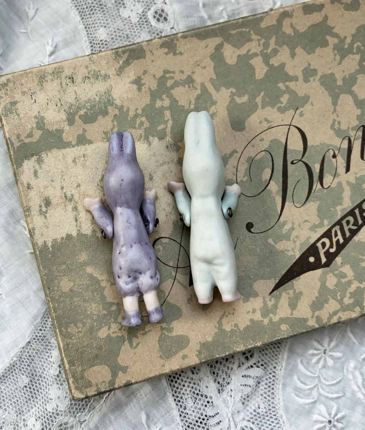 【完成ドール】ミニチュアビスクドール/ うさぎの着ぐるみ / 6cm