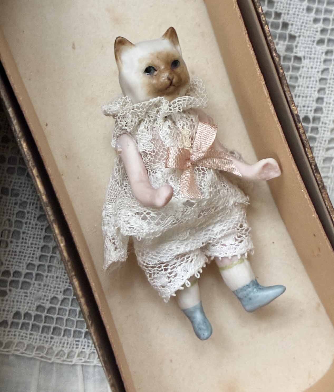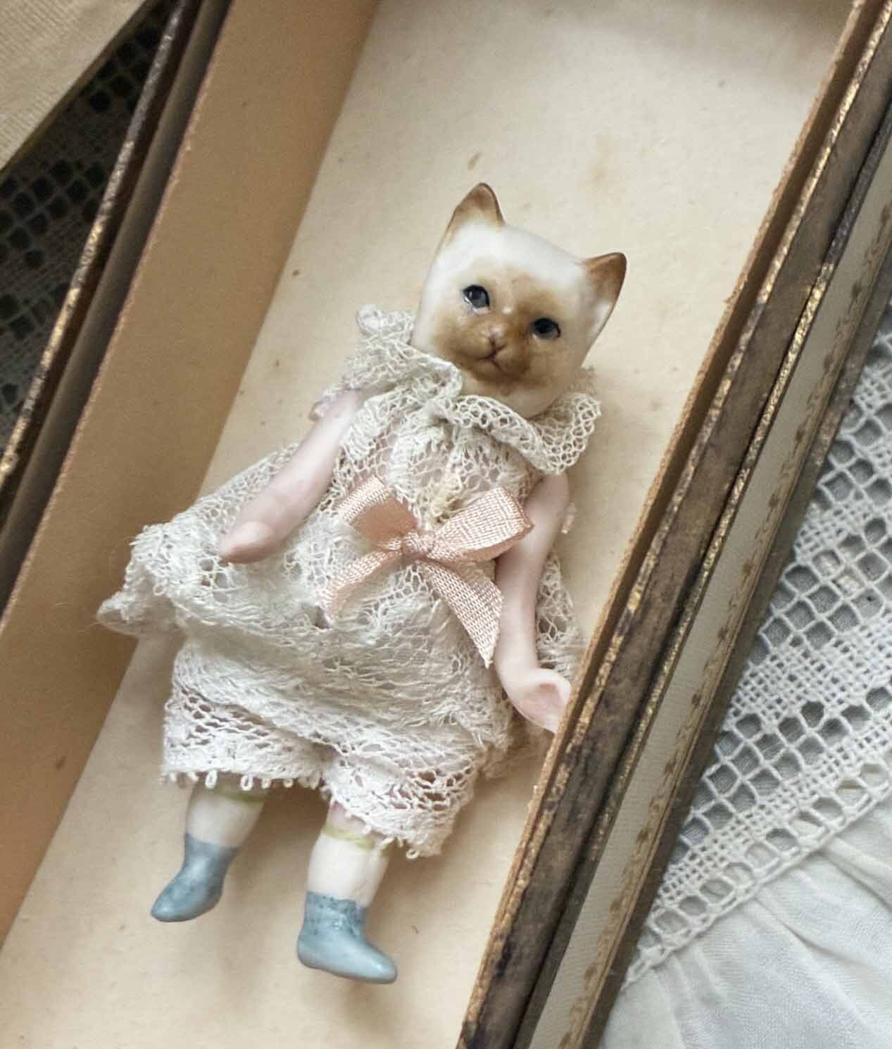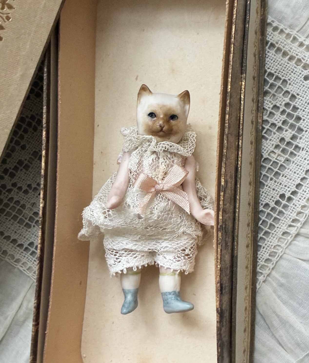 【完成ドール】ミニチュアビスクドール/キュルビス(猫) / 6.5cm