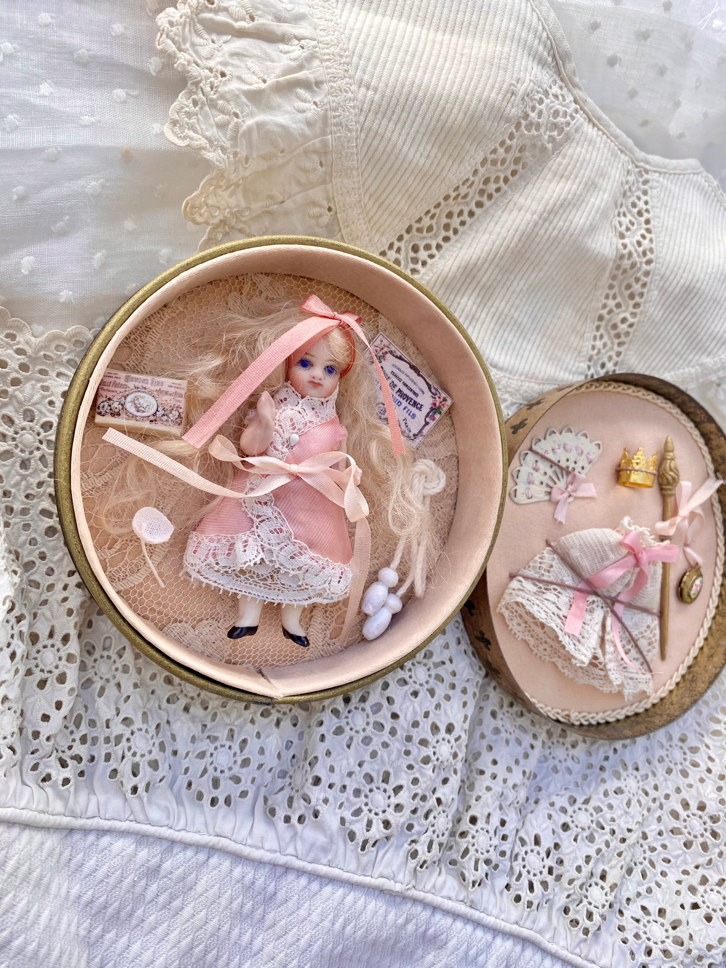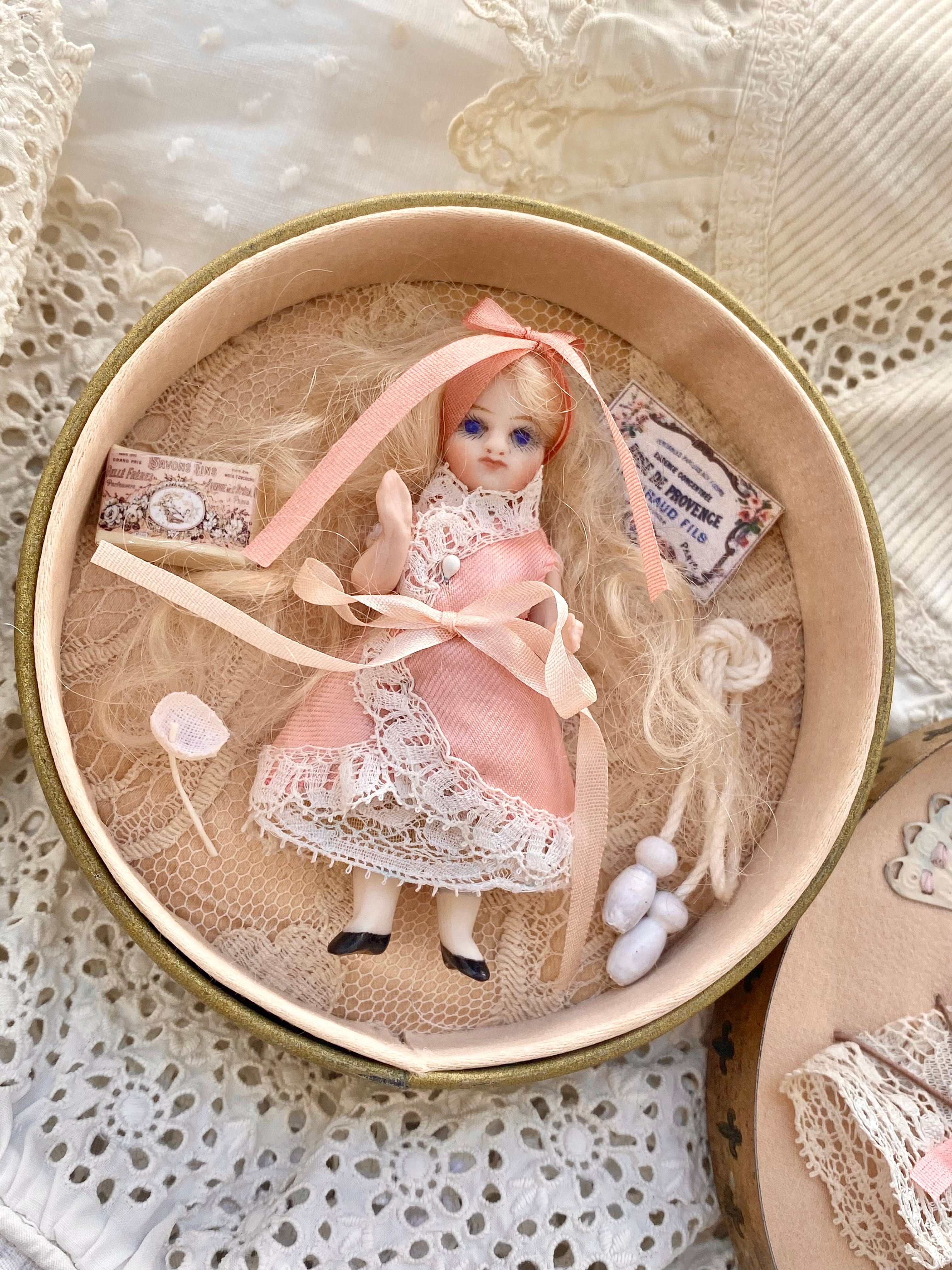 【完成ドール】フレンチミニョネット・シャーリー2/ オールビスク/ 7cm/プチプレゼンテーション仕立て