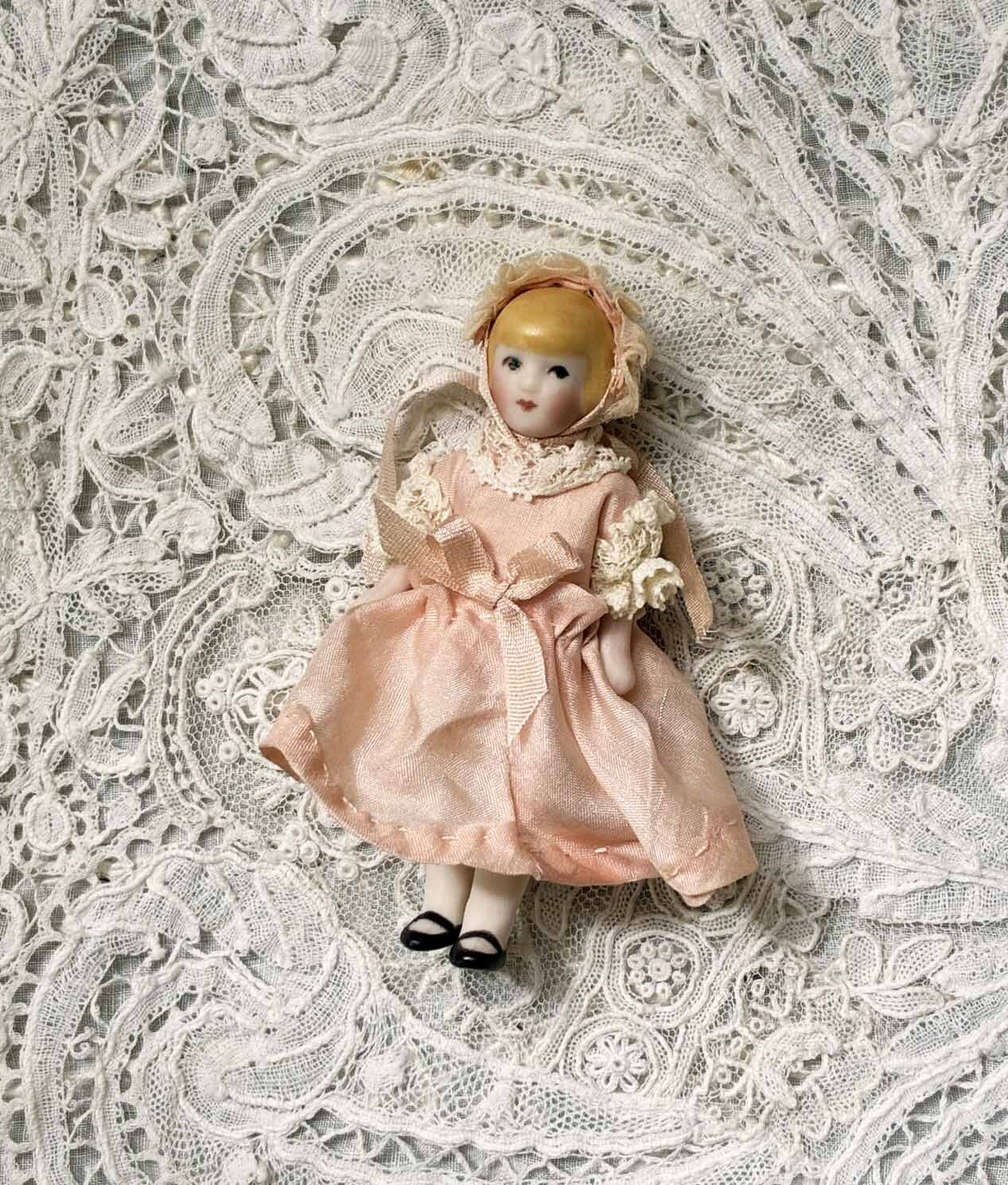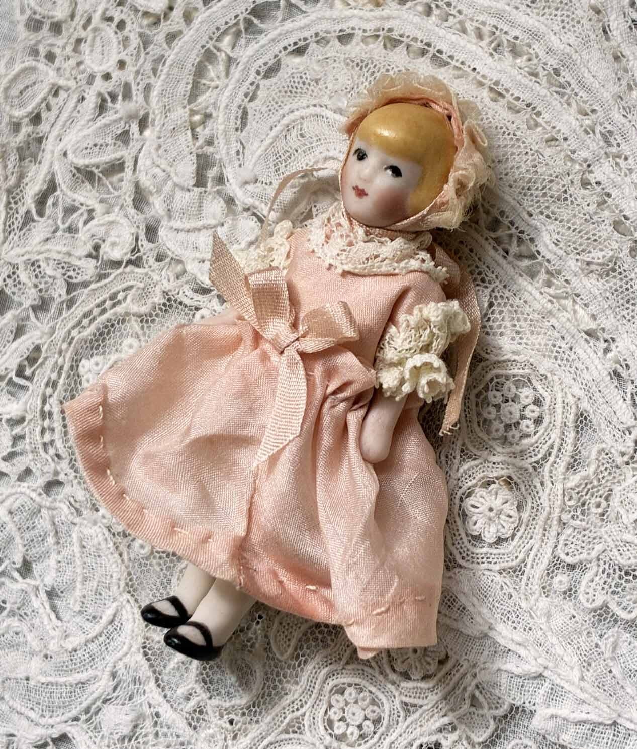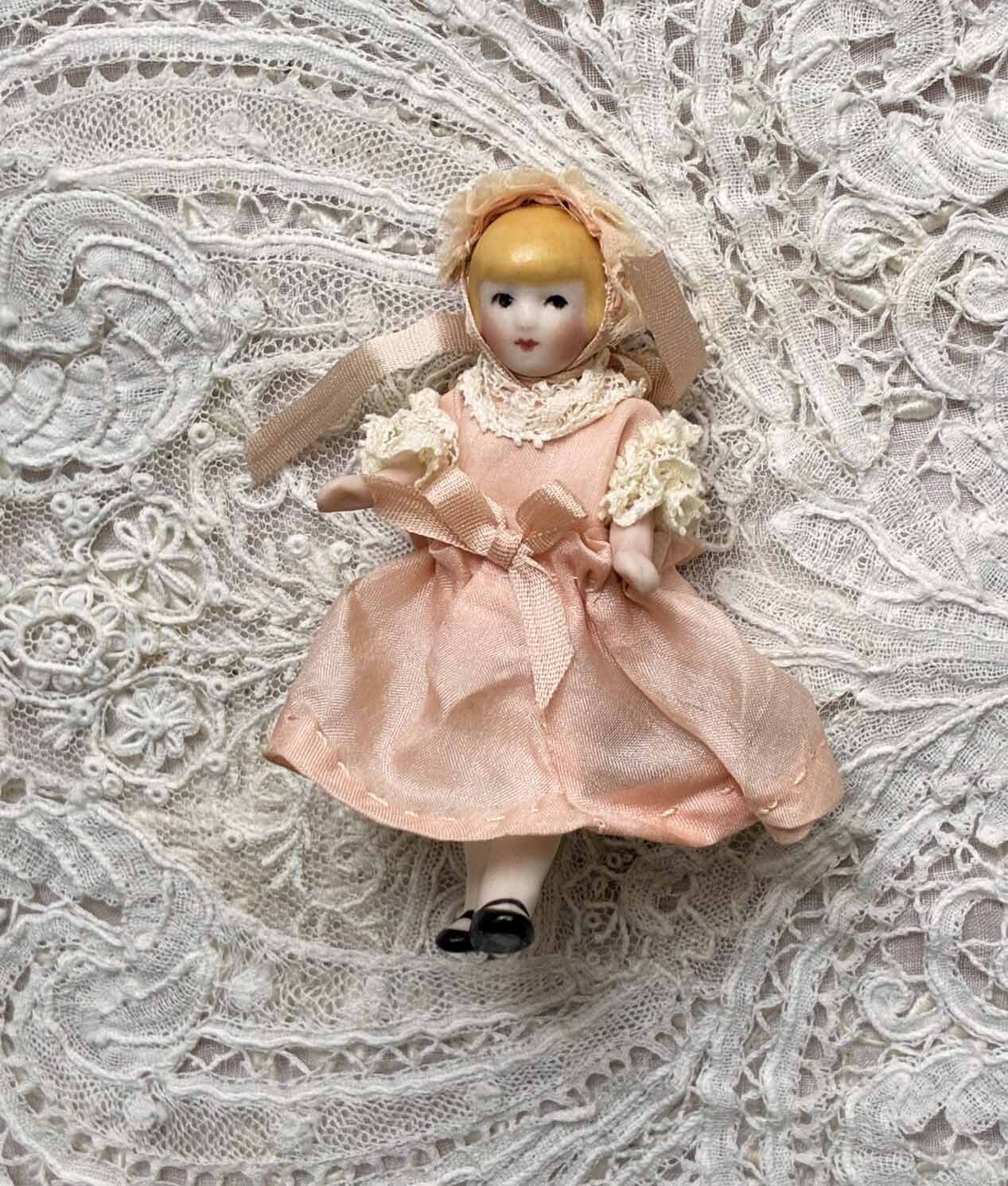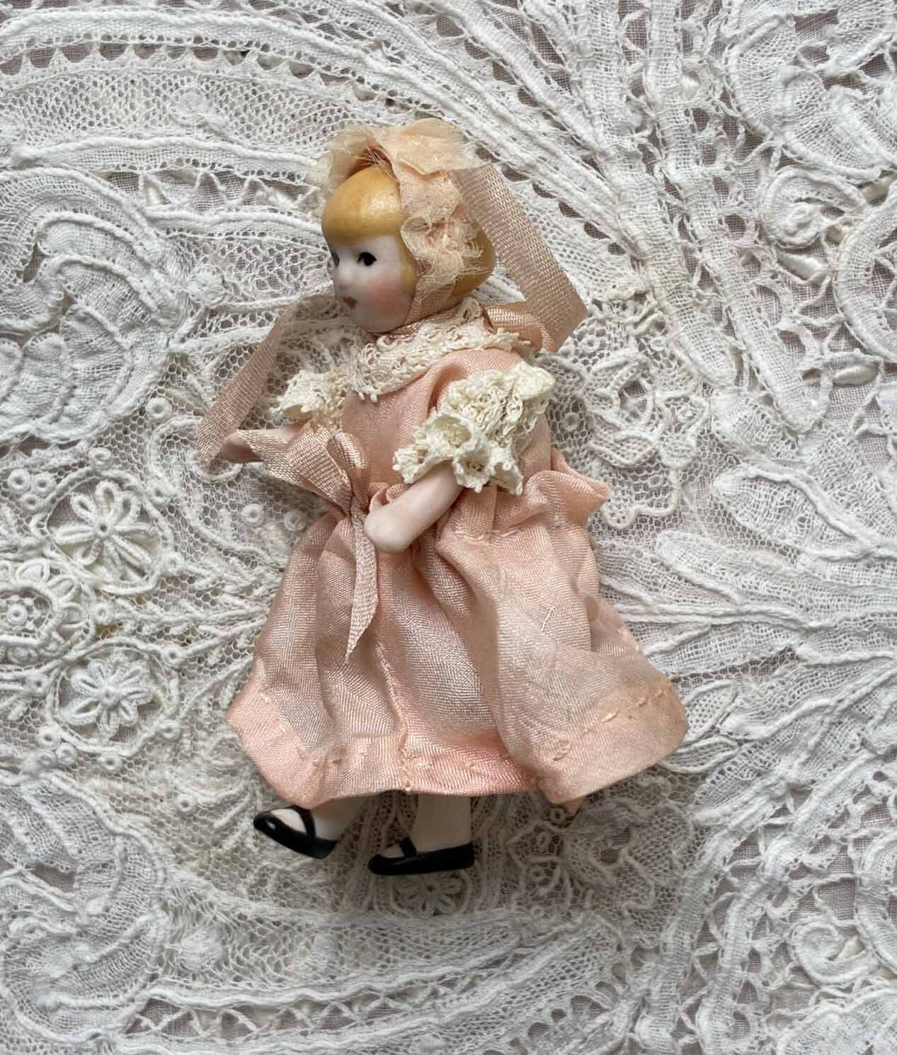 【完成ドール】ピンクドレスのクロエ / 7cm /ミニチュアオールビスクドール